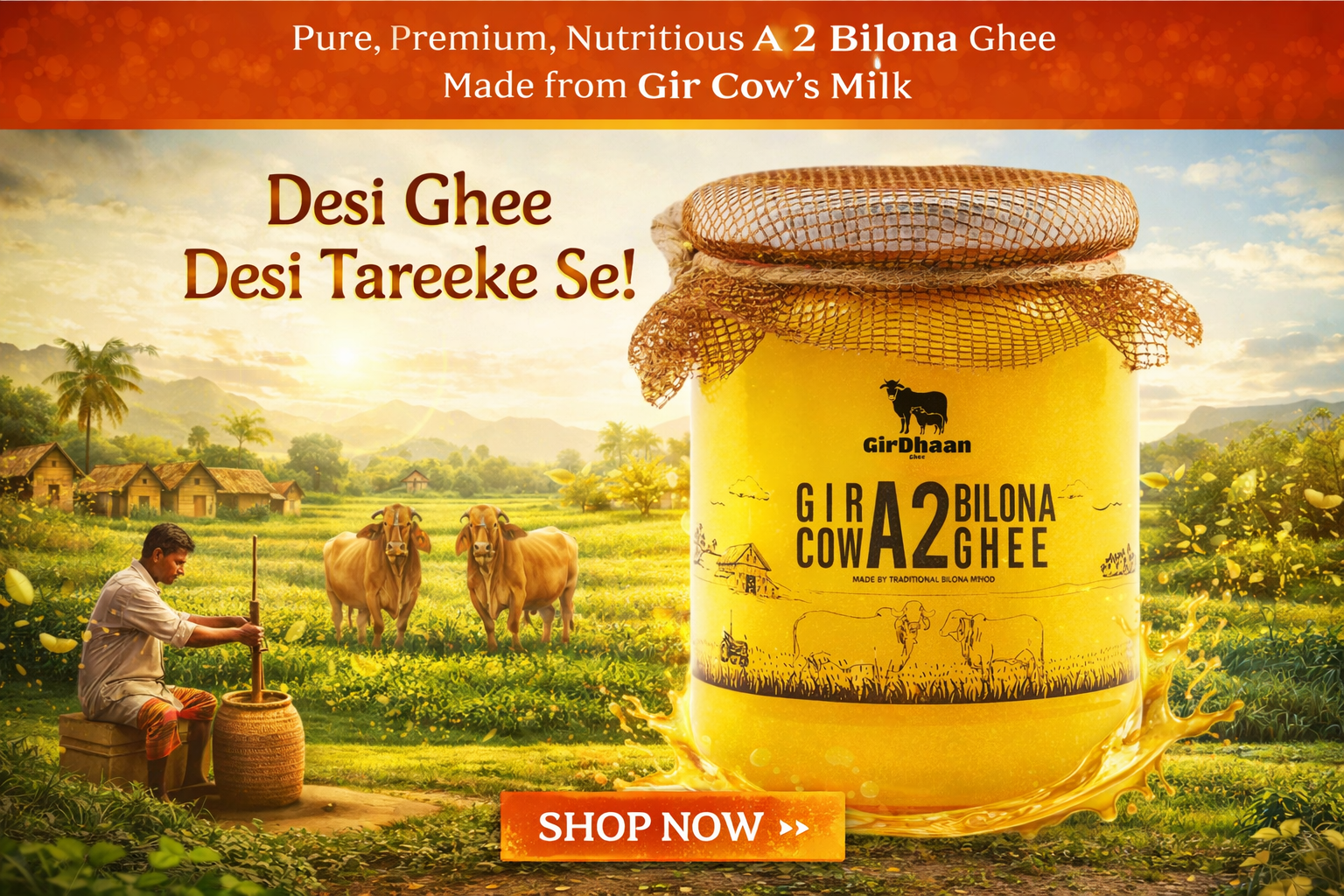 Rich, aromatic ghee packed with tradition and wellness benefits.